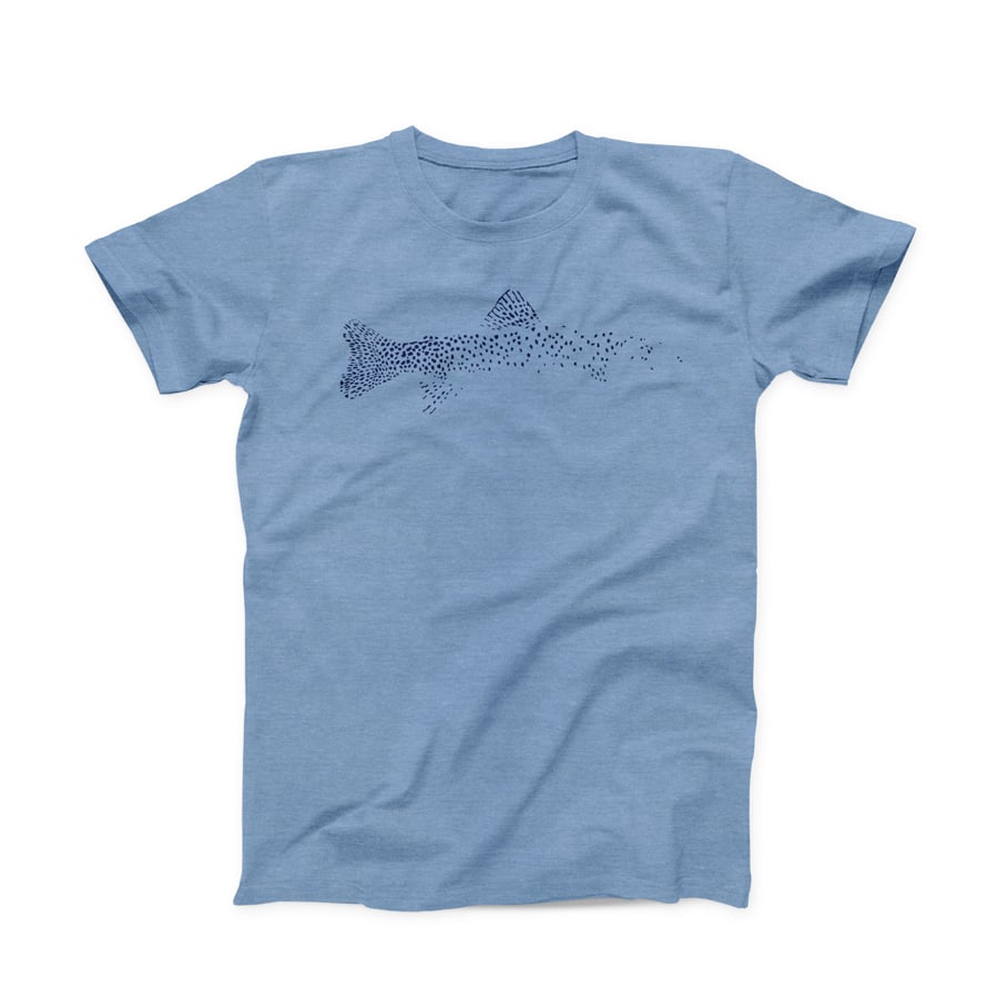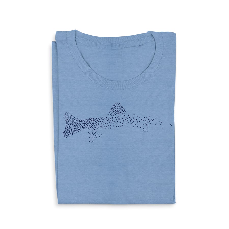 A shirt for the subtle fly fisherman. This 'Ghost Trout' shirt quietly says "Yes, I enjoy fly fishing..." and does it without saying "Brah"... Get yours and show your subtle love of the mighty trout today...